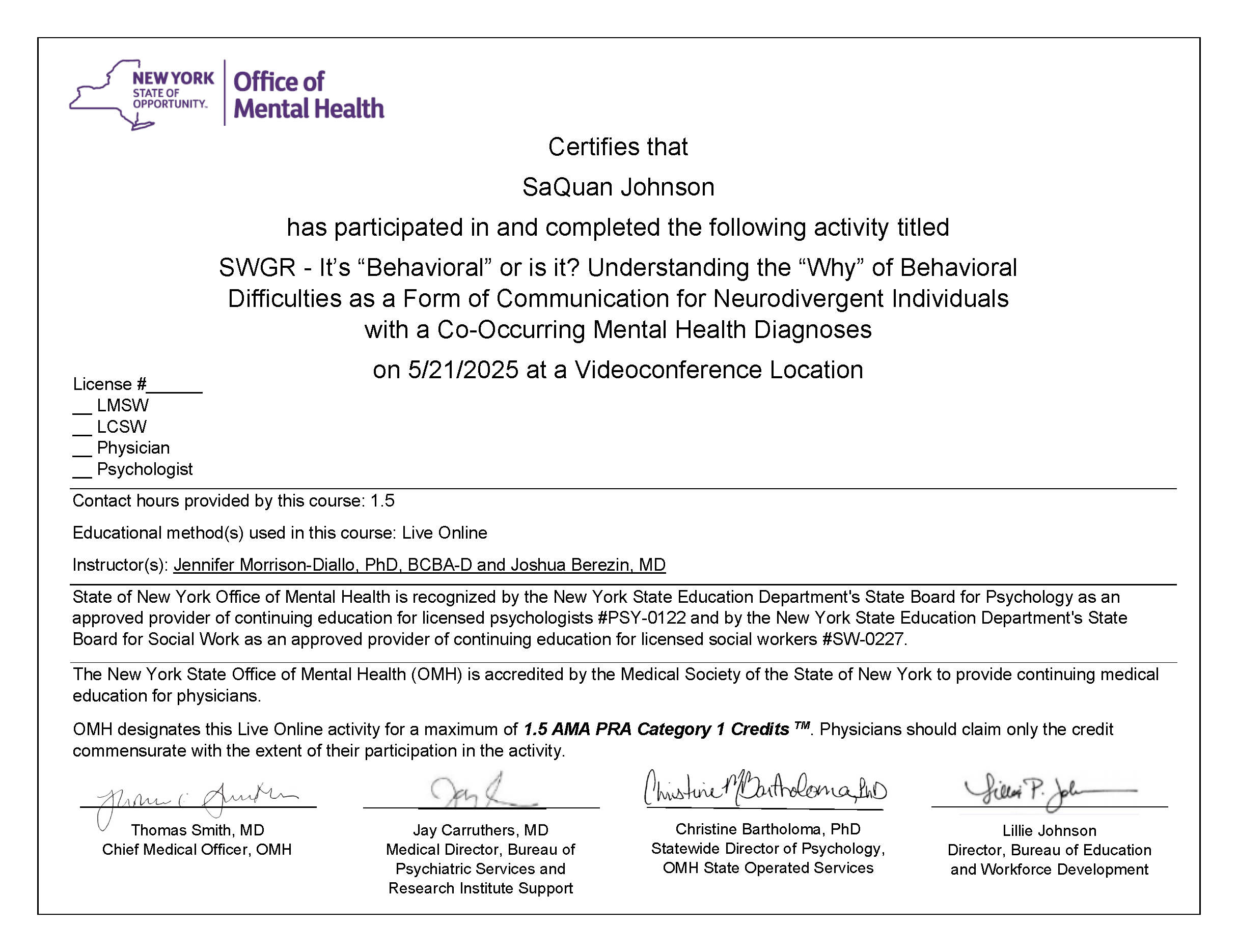 Certificates